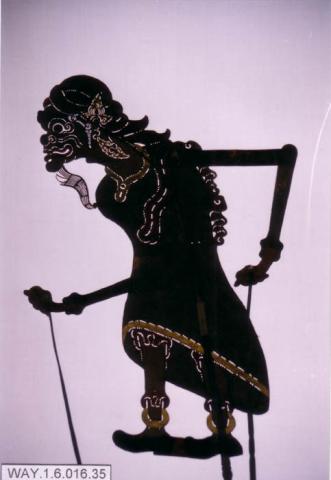 Wayang kulit tokoh kakek-kakek atau Pendeta untuk karakter buruk seperti Begawan Gonjaka (ayah Pandita Dorna); koleksi Dalang Taham dari Desa Tambi; Kecamatan Sliyeg; Kabupaten Indramayu yang didokumentasi sekitar tahun 1993 di Sanggar Mulya Bhakti.